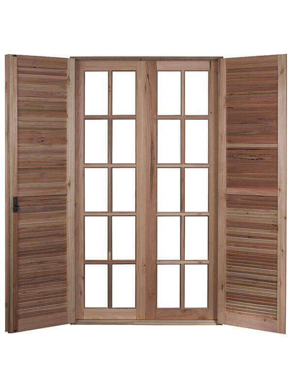 Porta balcão de abrir veneziana em madeira quadriculada reta p. cedro cx. 14.
